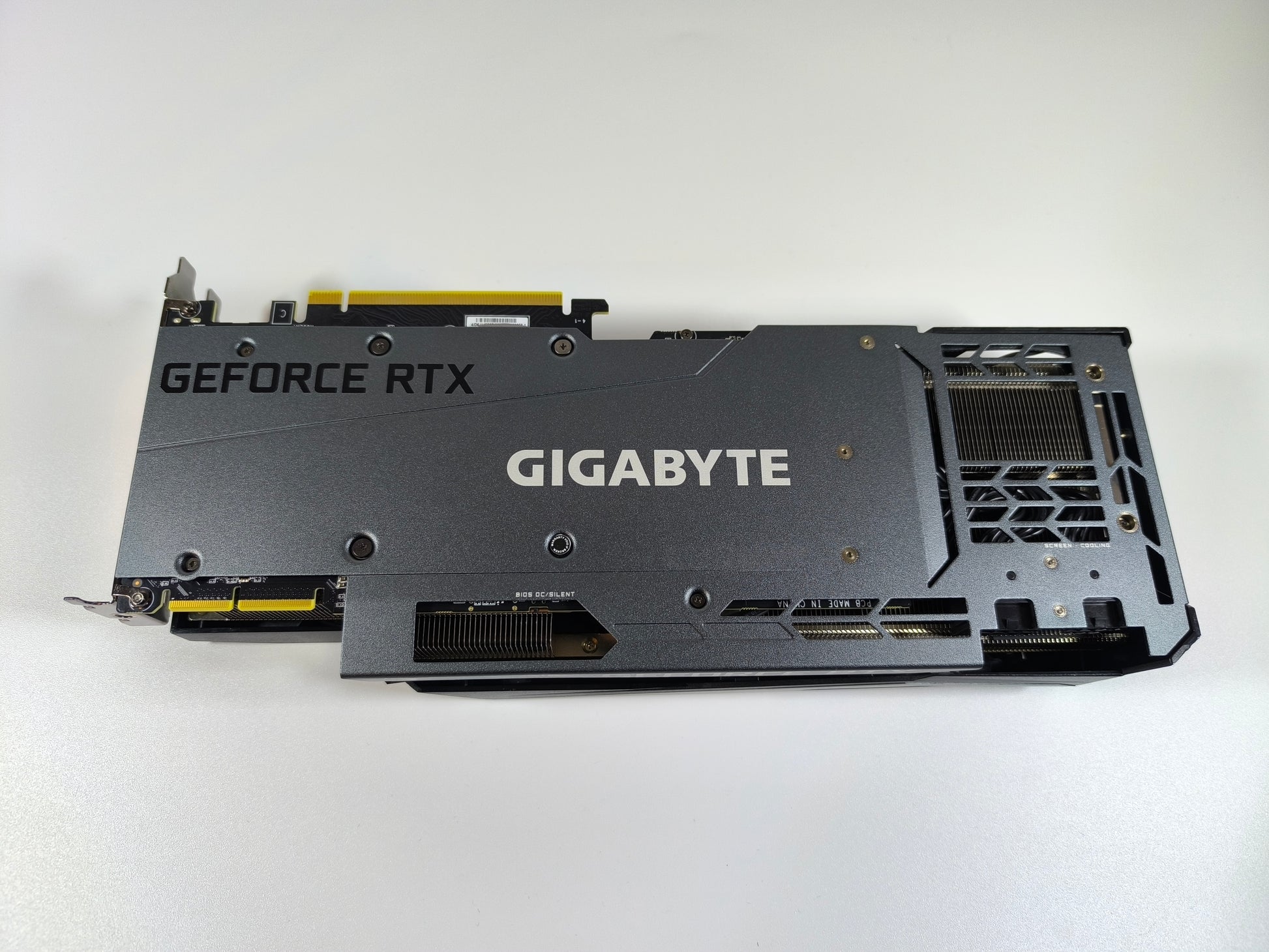 Die verstärkte Metall-Rückplatte schützt das PCB und fungiert durch unsere optimierten Pads als aktiver Passivkühler für die rückseitigen 24GB GDDR6X-Module.