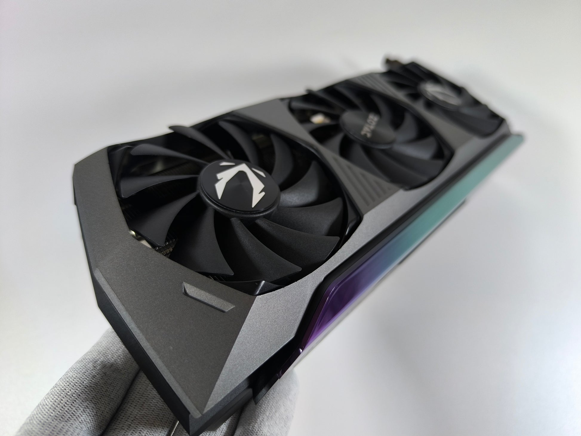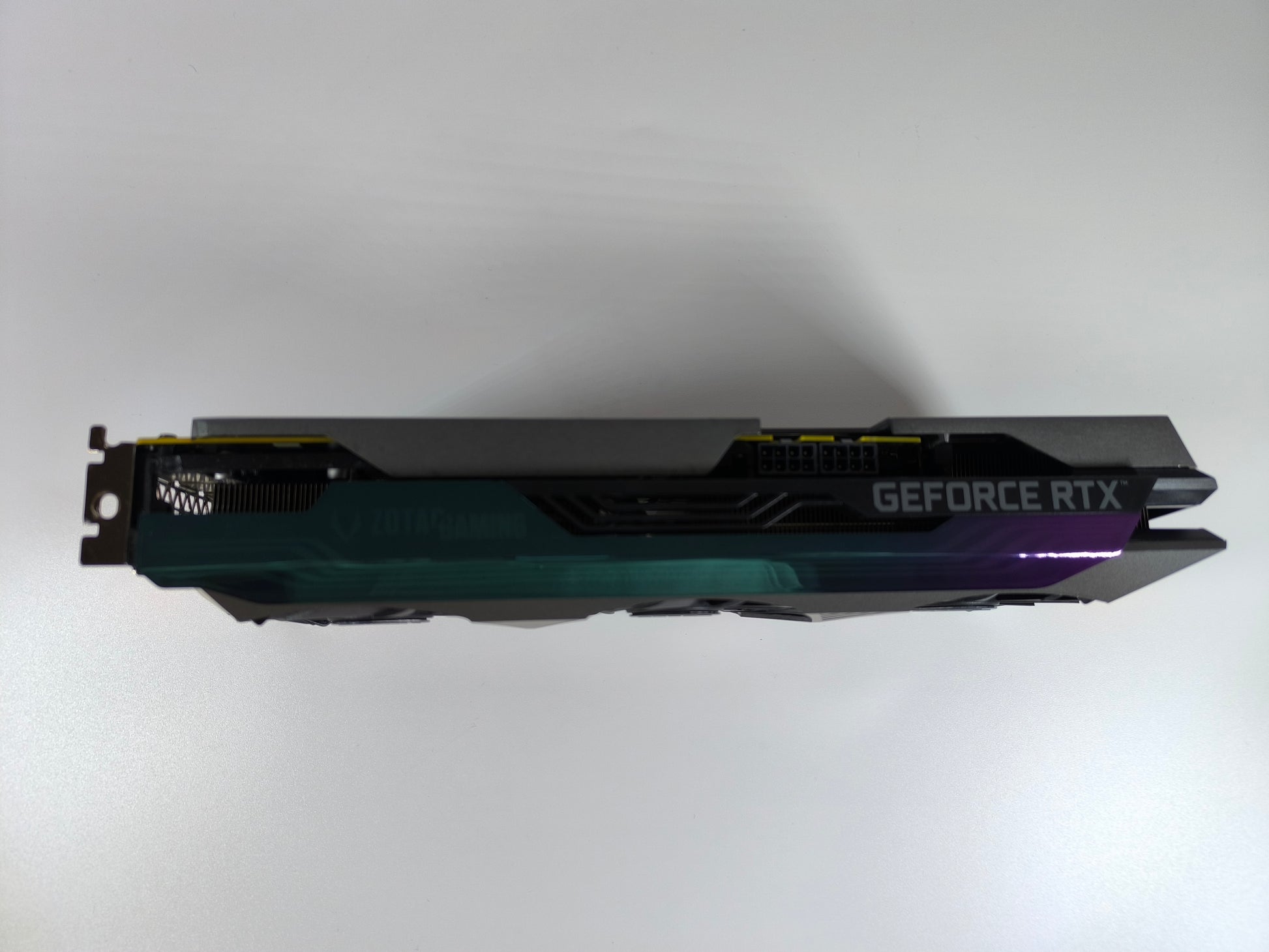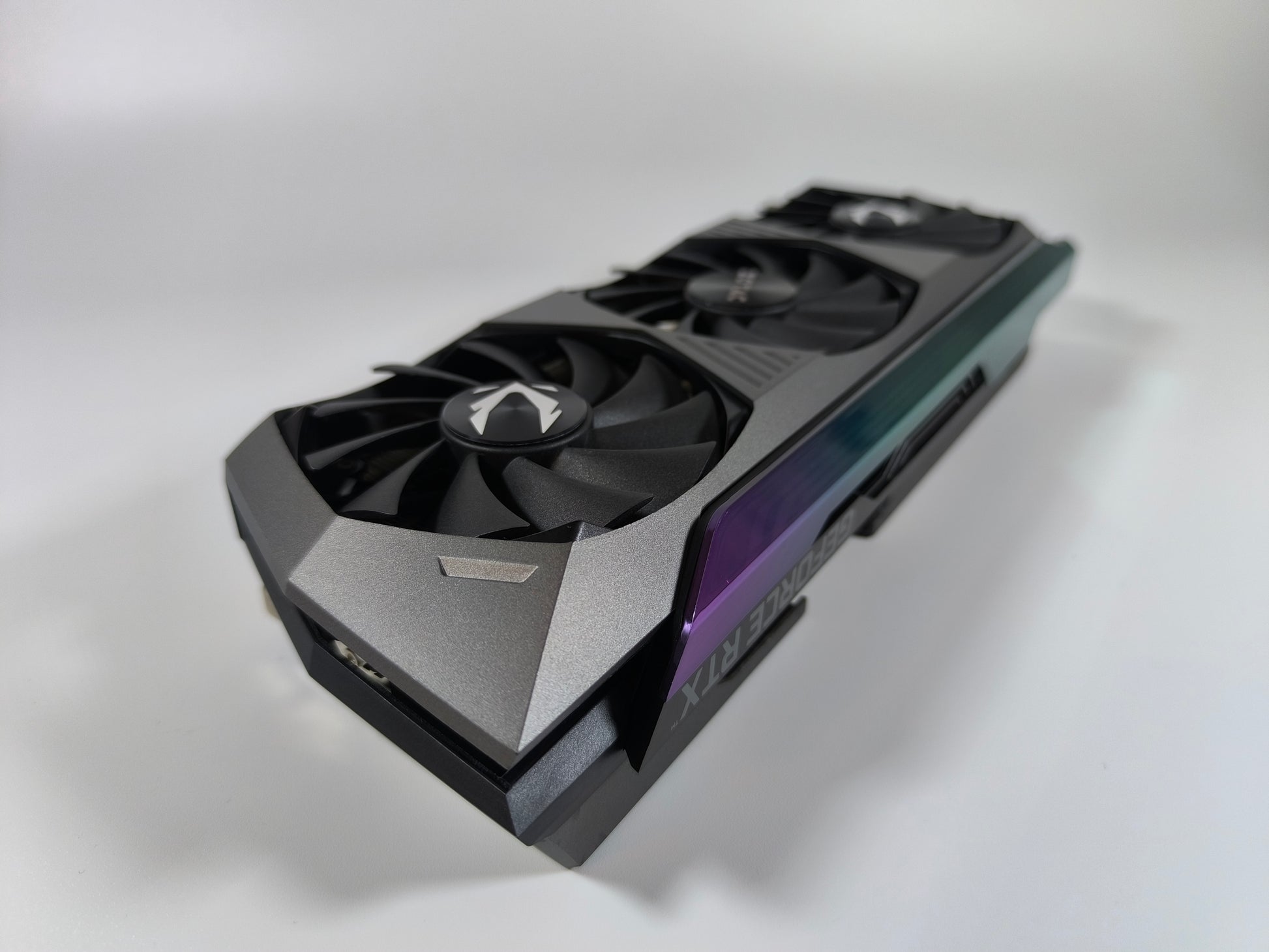 Massive 317,8 mm Bauweise mit Spectra 2.0 RGB. Die durchgehende Metall-Backplate sorgt für strukturelle Integrität und kühlt die rückseitigen GDDR6X-Komponenten.